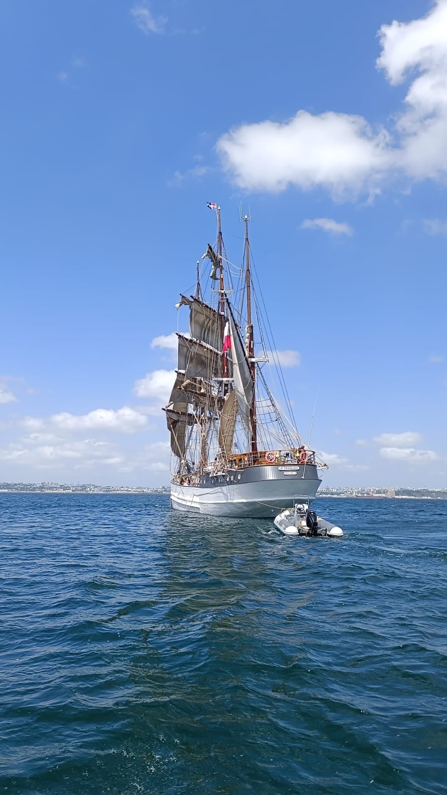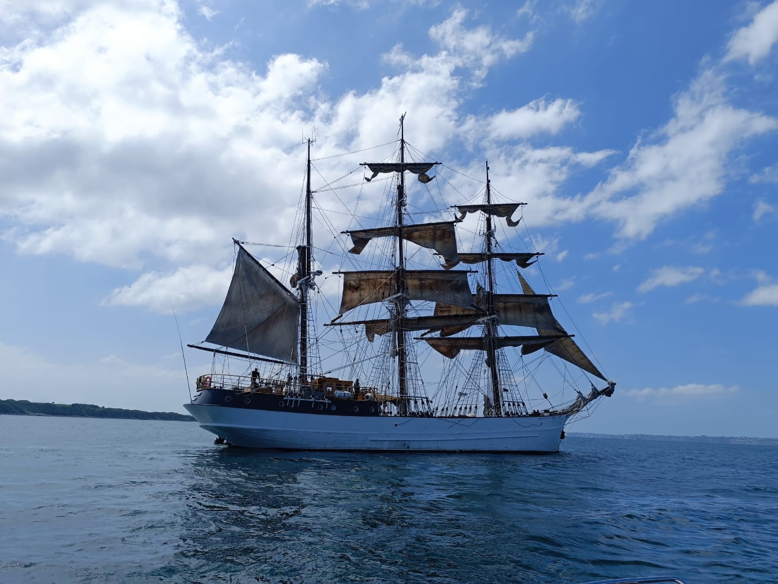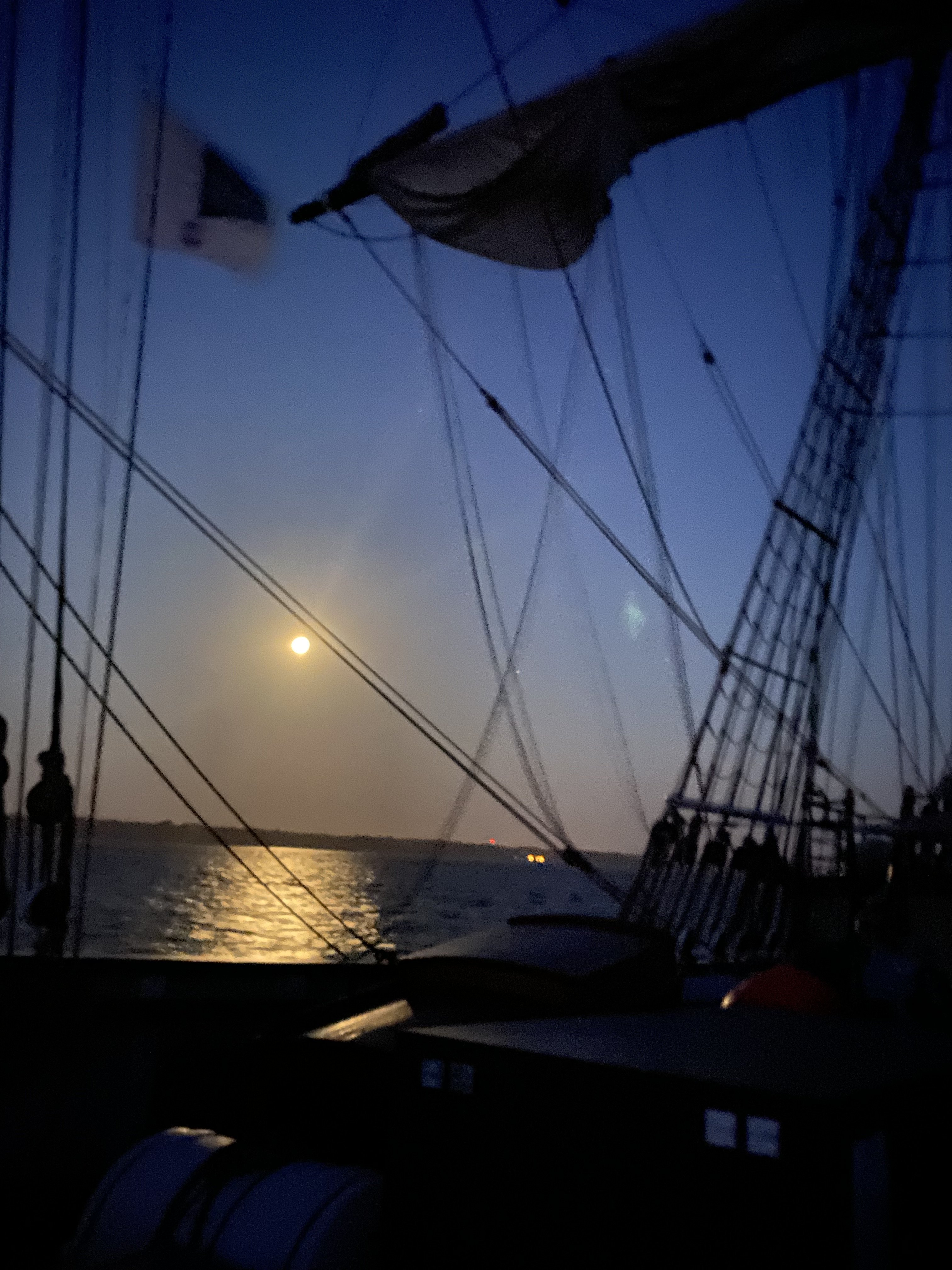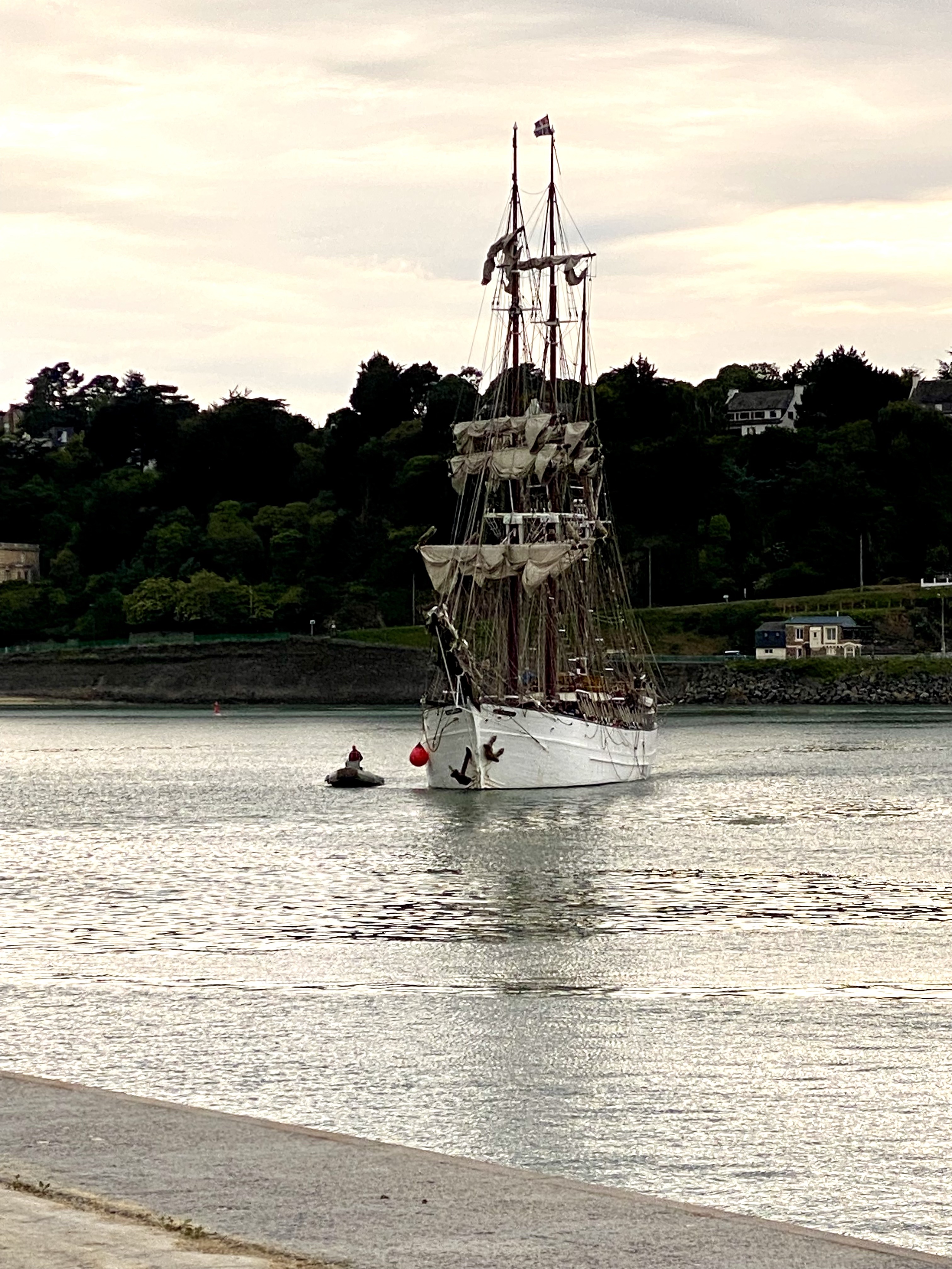 Appareillage à 5h du matin, au clair de lune, petit déjeuner sur la dunette. Route vers la rade de Brest :