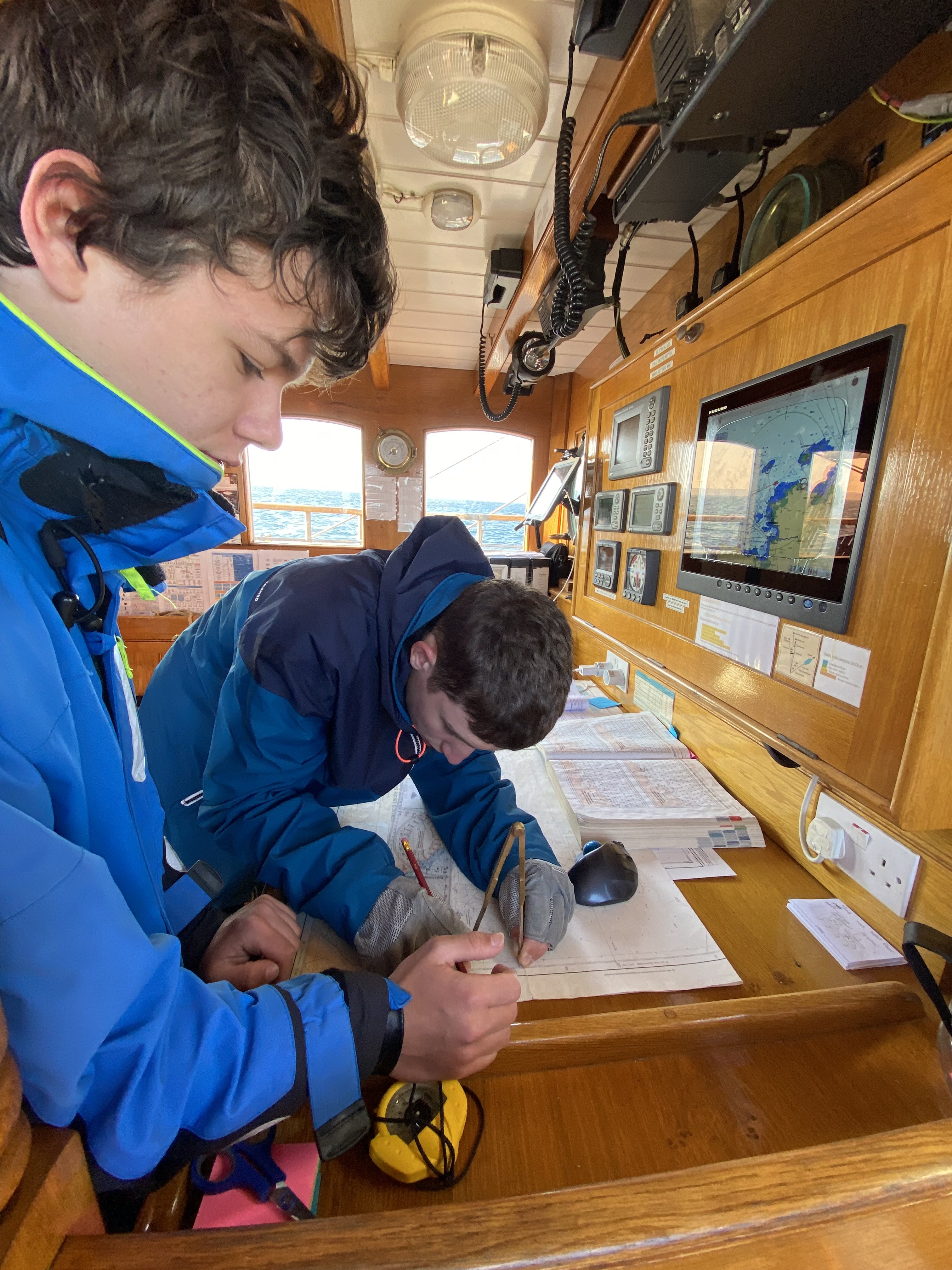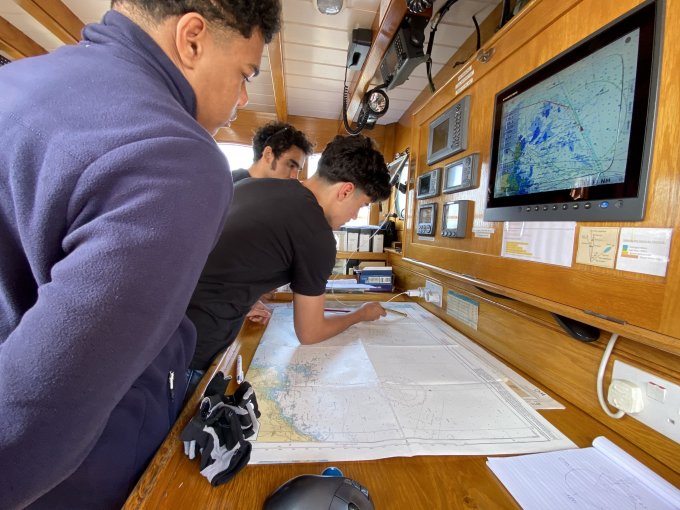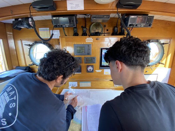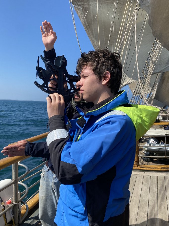 On apprend à utiliser un sextant, à faire des noeuds marins sans oublier de faire le point toutes les heures :