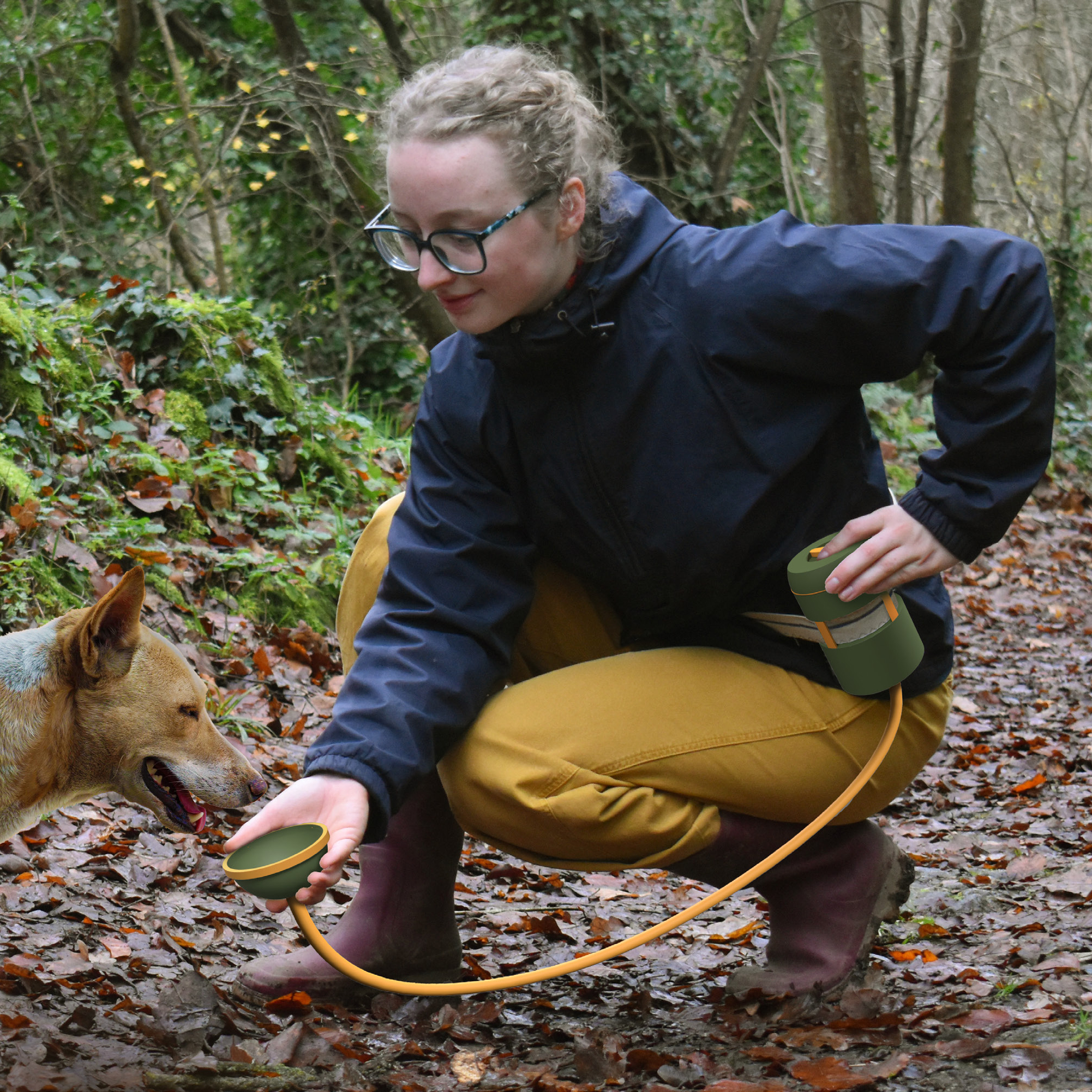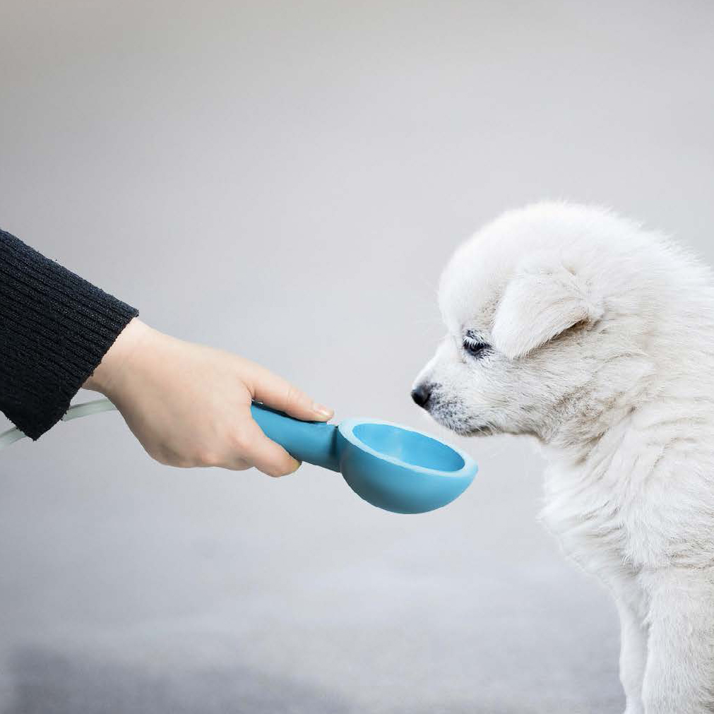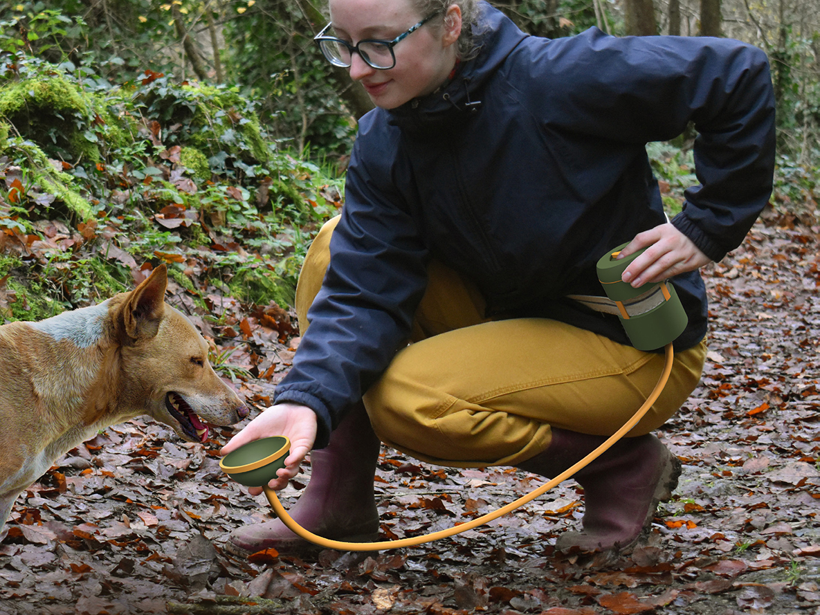 Comme tous les chiens promenés par leur maître, Indy a régulièrement soif. Il est donc nécessaire de disposer d’une gourde et d’une gamelle adaptées à cet usage.