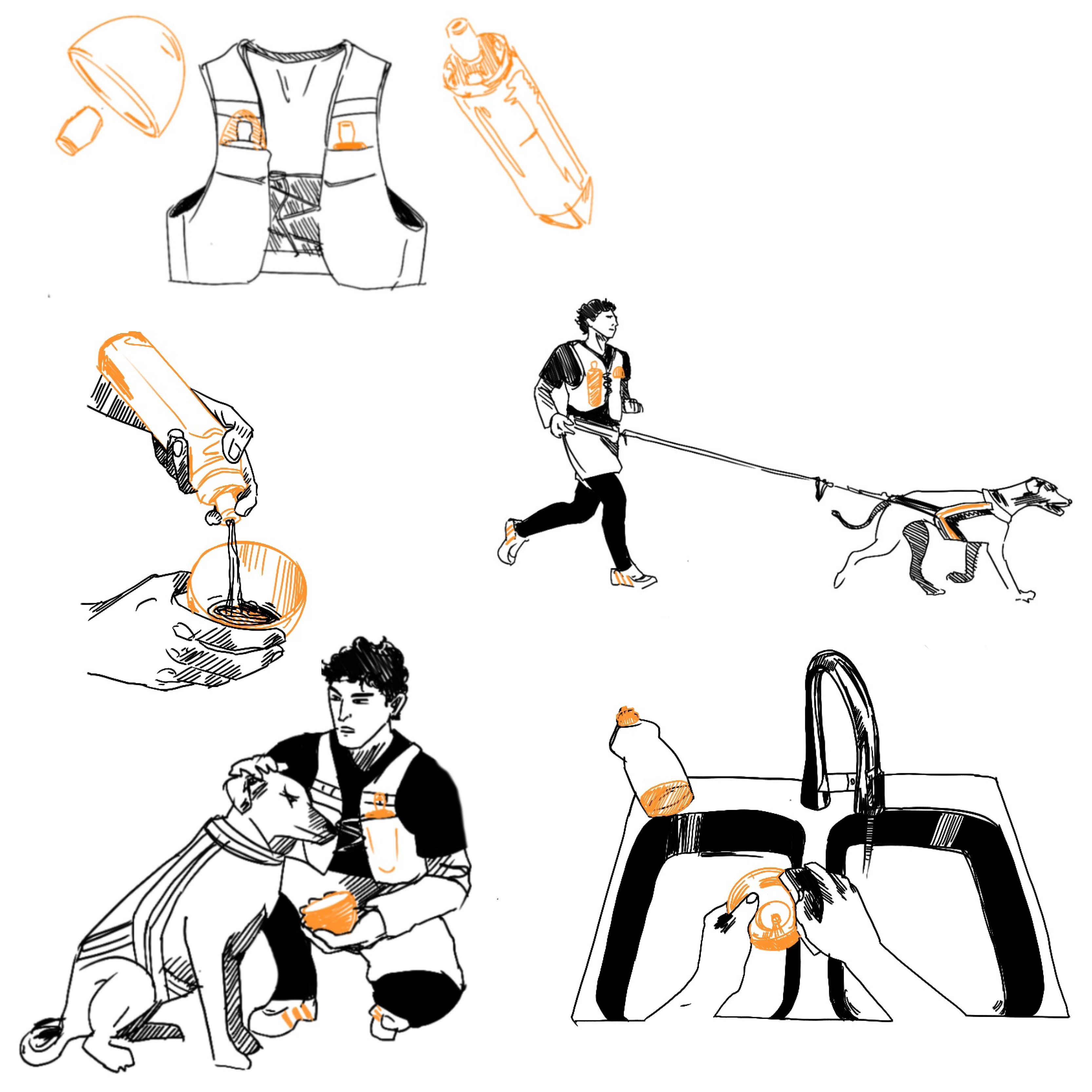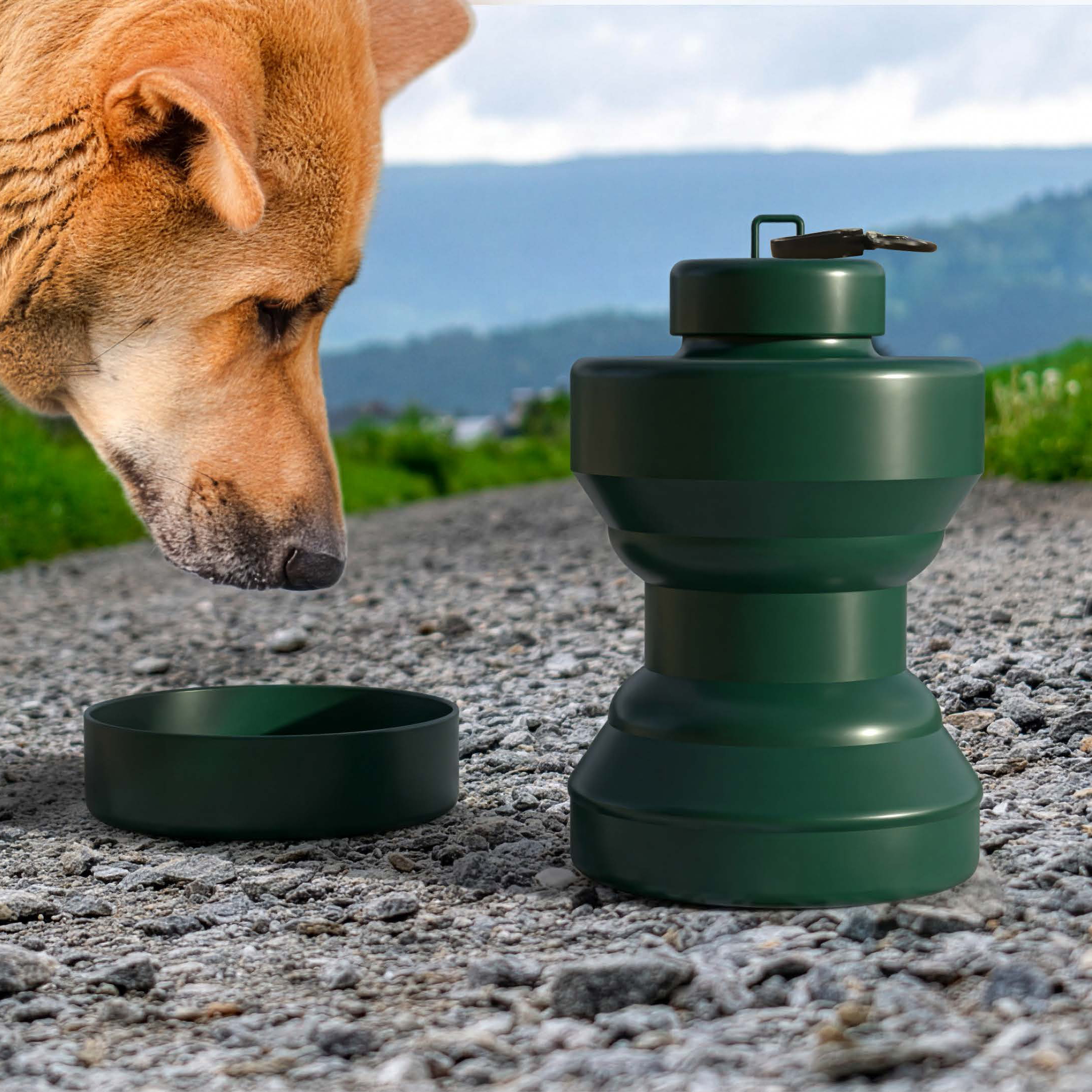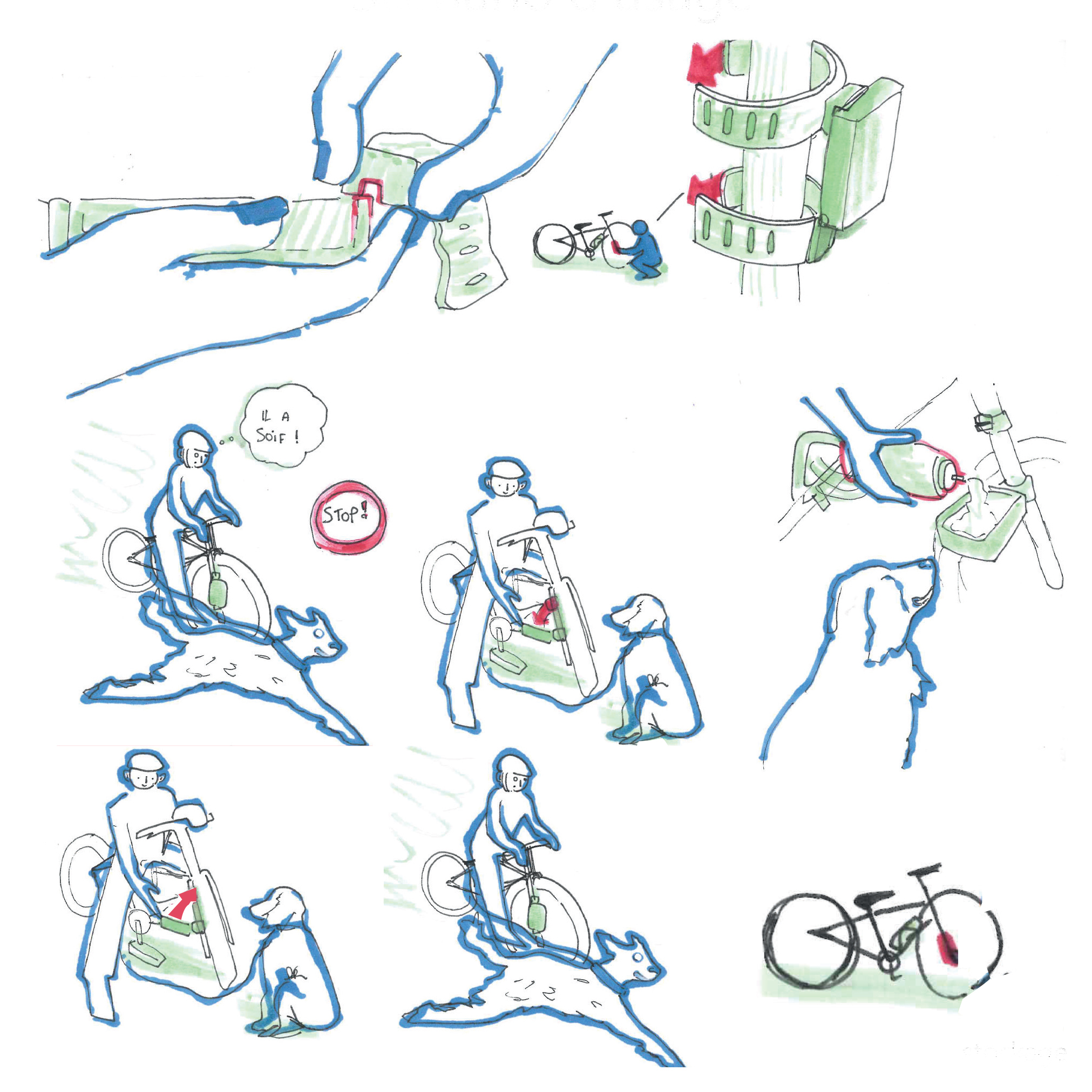 Comme tous les chiens promenés par leur maître, Indy a régulièrement soif. Il est donc nécessaire de disposer d’une gourde et d’une gamelle adaptées à cet usage.