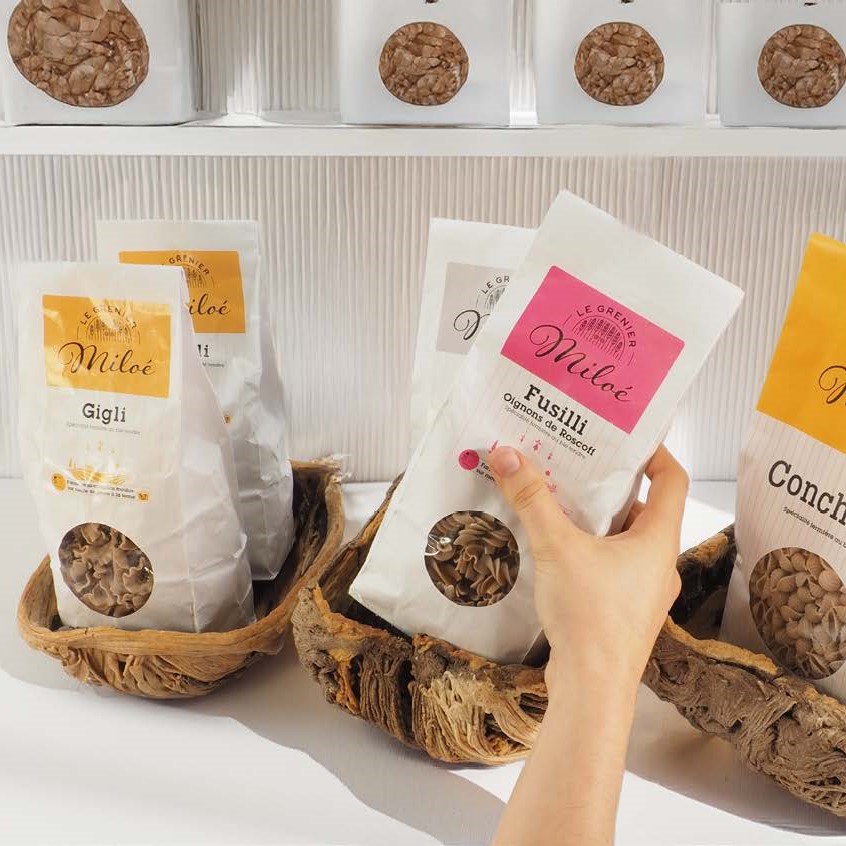 C’était la question posée par Marine Bougeard, dirigeante de l’entreprise Le Grenier Miloé, qui commercialise des pâtes à base de blé tendre issu de son exploitation agricole. La récolte du blé produit des déchets végétaux – le son – qu’elle a confiés aux étudiants de DN MADE 2 pour qu’ils réfléchissent à la façon de les valoriser. Après un premier travail d’expérimentation, les étudiants ont mis au point des recettes pour fabriquer des objets variés dans les domaines de la PLV (publicité sur lieu de vente), du design culinaire et de la décoration.