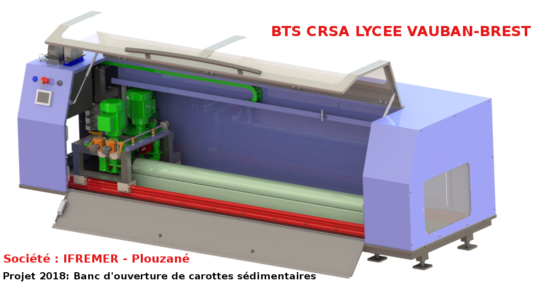 Un groupe d’étudiants a conçu et réalisé un banc de découpe de carottes sédimentaires (Les carottes sédimentaires sont des prélèvements de sédiments effectués dans les fonds marins par exemple). Le sédiment est enfermé dans un tube PVC qu’il faut découper de chaque côté sur la longueur sans polluer l’échantillon..